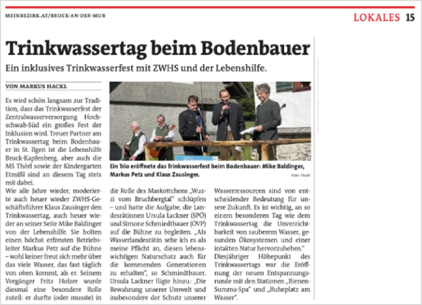 1. inklusiver Trinkwassertag (2022), neuer Platz Leibnitzer Feld Wasserversorgung GmbH