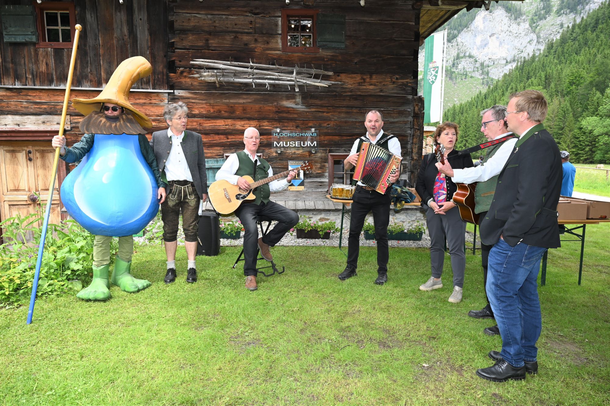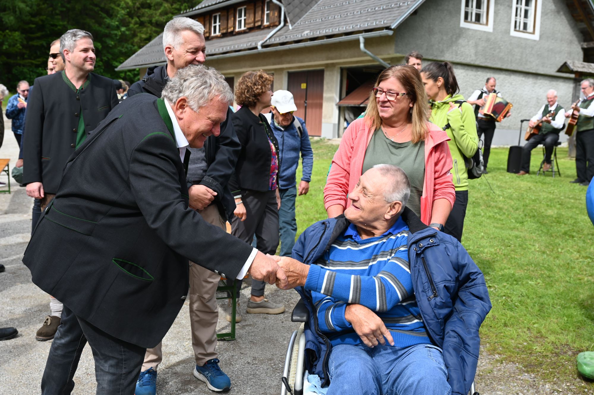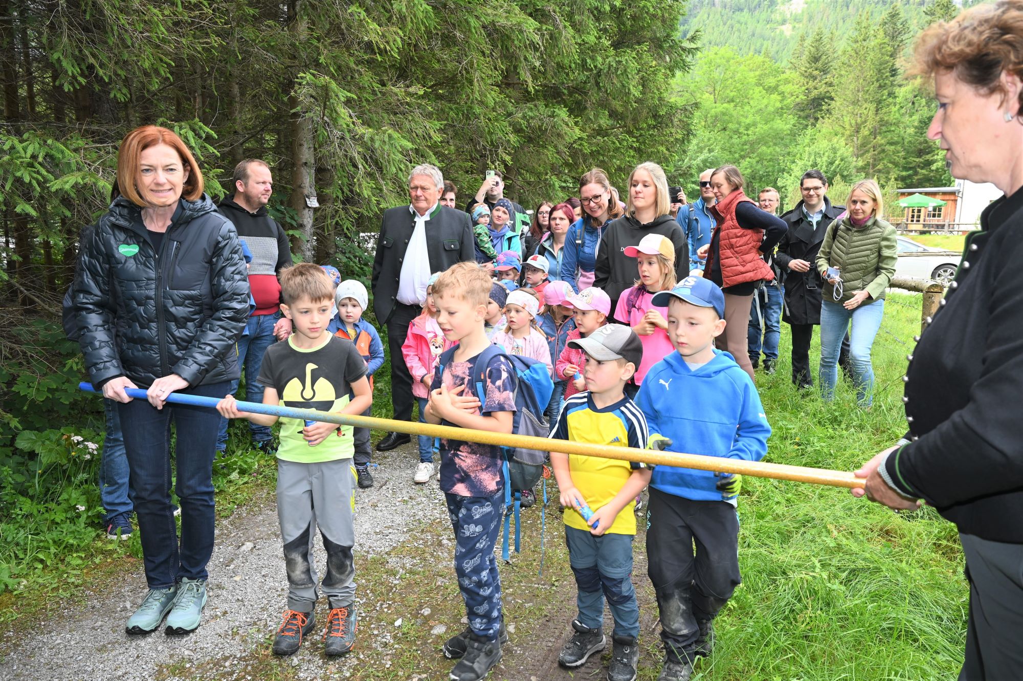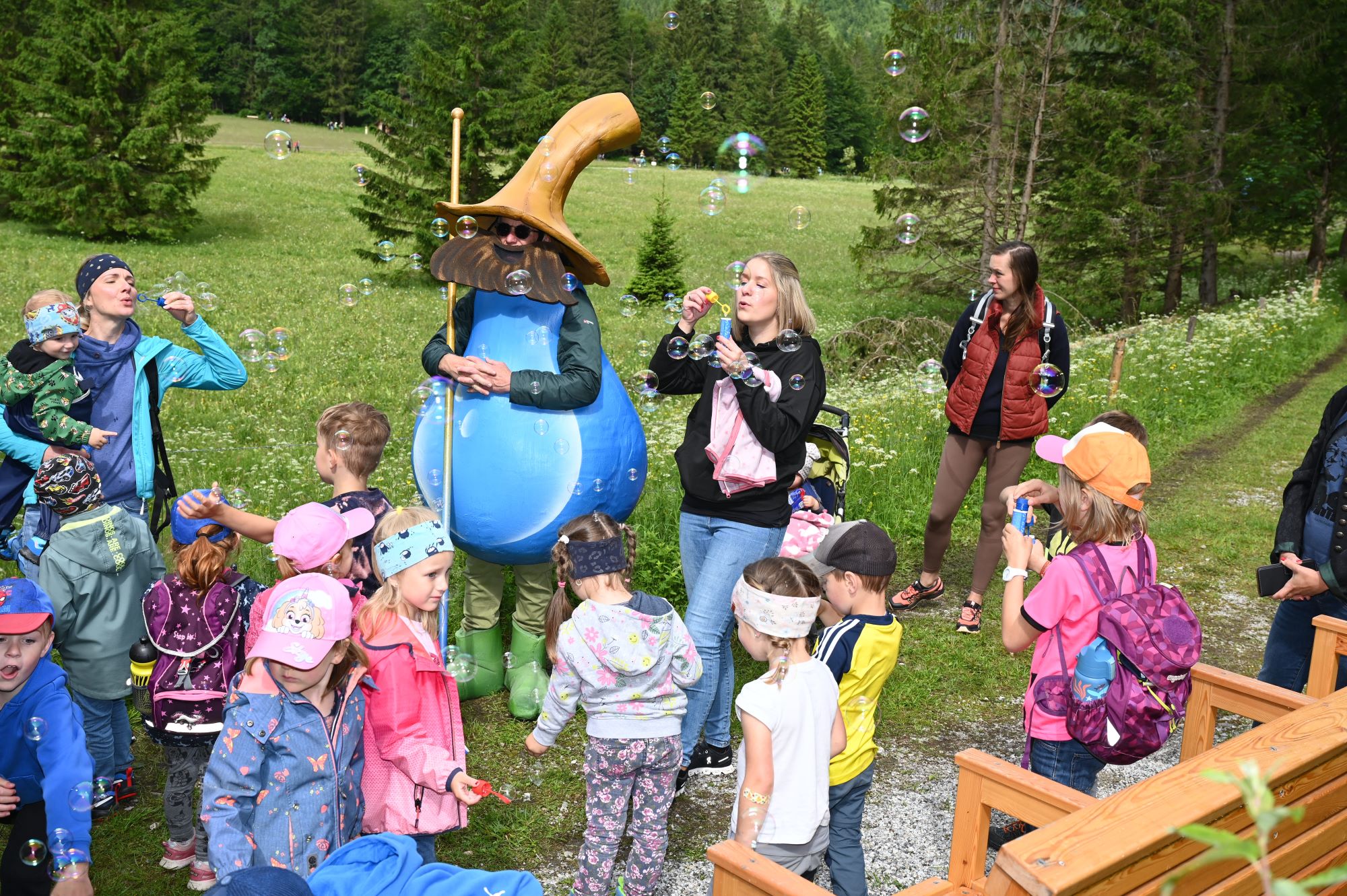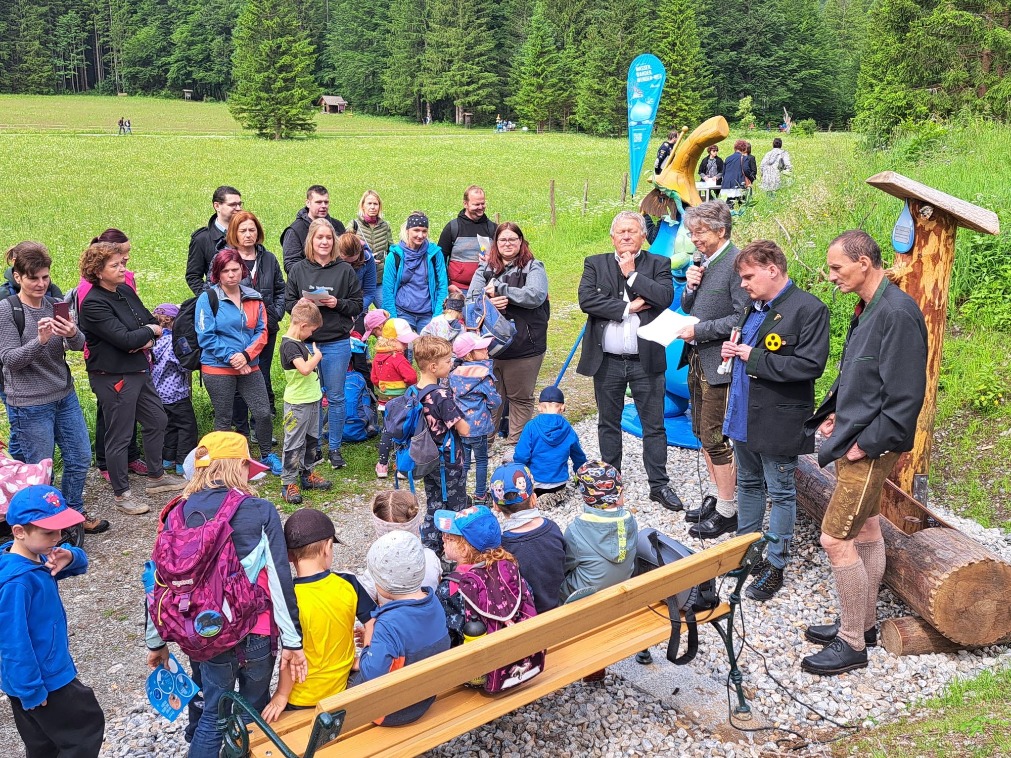 Mehr als 100 Schüler:innen, über 50 Gäste der Lebenshilfe Bruck-Kapfenberg, zahlreiche Besucher:innen sowie Ehrengäste begaben sich auf die Rätselreise und feierten gemeinsam die neuen Entspannungsorte. Das lebendige „Konzert der Bienen“ erfrischte ebenso wie der Wasserschatz am Ruheplatz. Die musikalische Untermalung übernahmen die Ritschis, ein schwungvolles Trio aus Pernegg. Benedikt Harichs Alphornklänge brachten die Festgesellschaft zur Ruhe und dann sorgte die Geräuschkulisse der Natur für Entspannung. Bei der anschließenden Verlosung warteten tolle Preise auf die glücklichen Gewinner:innen, und auch das Hochschwabmuseum hatte seine Pforten geöffnet. Kulinarisch wurden die Gäste verwöhnt: Die neuen Pächter des Alpengasthofs „der Bodenbauer“, Brigitte und Andreas Tatzl, und ihr Team sorgten für Gaumenfreuden.